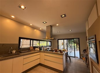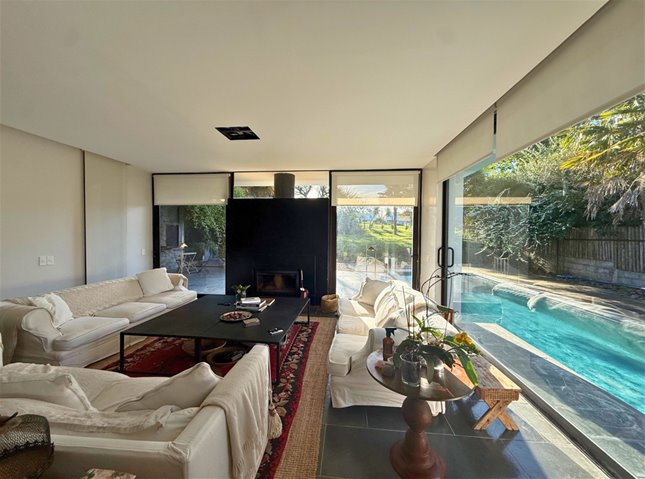 La casa cuenta con 4 habitaciones, 5 baños, un living comedor con 2 estufas a leña, escritorio, y cocina totalmente equipada con horno, anafe y campana.